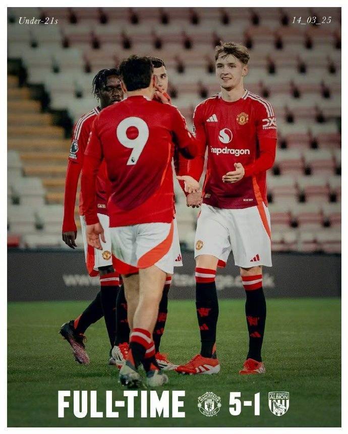 直播吧3月15日讯 在当地时间周五晚间进行的英超二级联赛中,曼联U21队主场5-1大胜西布朗U21队,位居积分榜第6位。